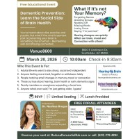Join Dr. Nashlea Brogan for a free educational event exploring the social side of brain health and dementia prevention. Learn how hearing changes can impact memory, mood, and connection—and what you can do about it. Designed for adults 60+, caregivers, and anyone noticing subtle cognitive shifts. Free lunch, a complimentary Preventing Decline membership ($600 value), and a free copy of Dr. Darrow’s book included. Limited seating—RSVP required.